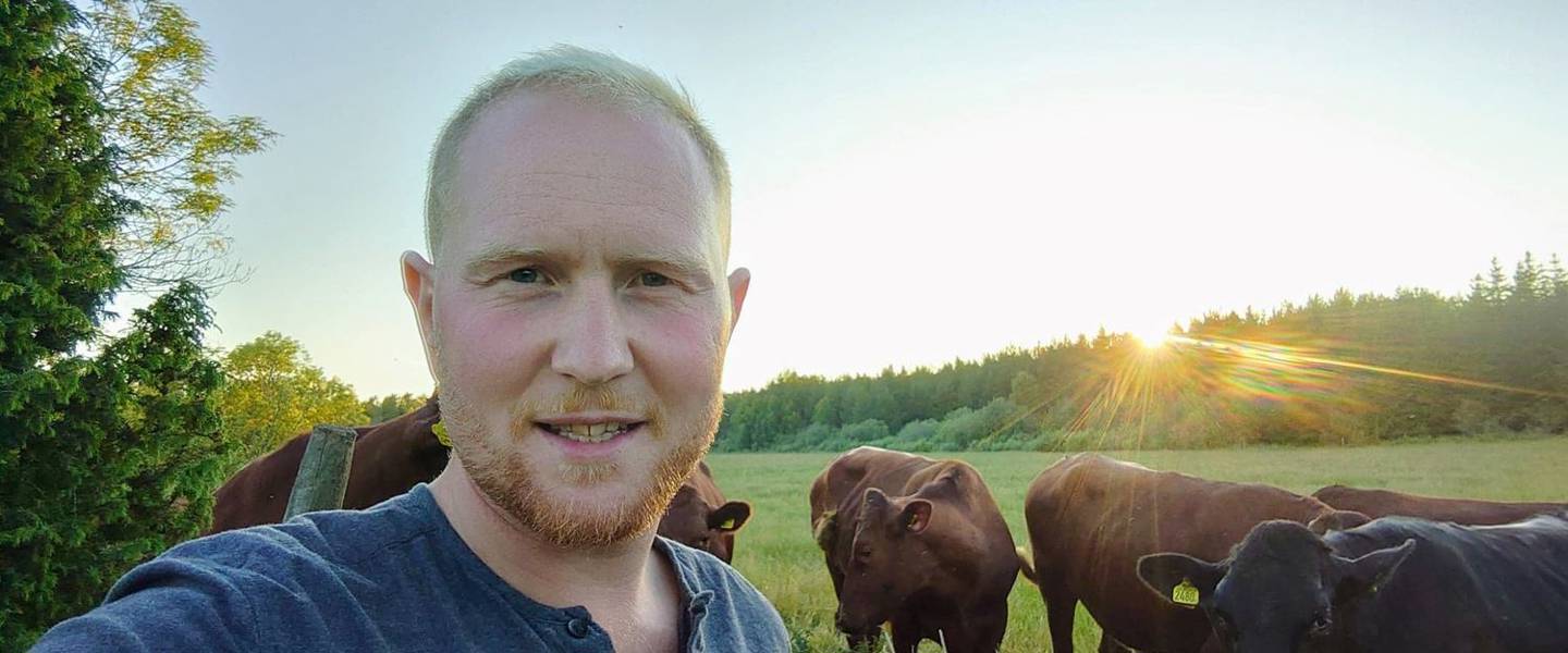 Mina föräldrar har drivit en gård i Uppland som jag nu har börjat jobba på och ska så småningom ta över. På gården finns köttdjur och spannmålsodling och så har vi kviguppfödning åt en mjölkgård i närheten.